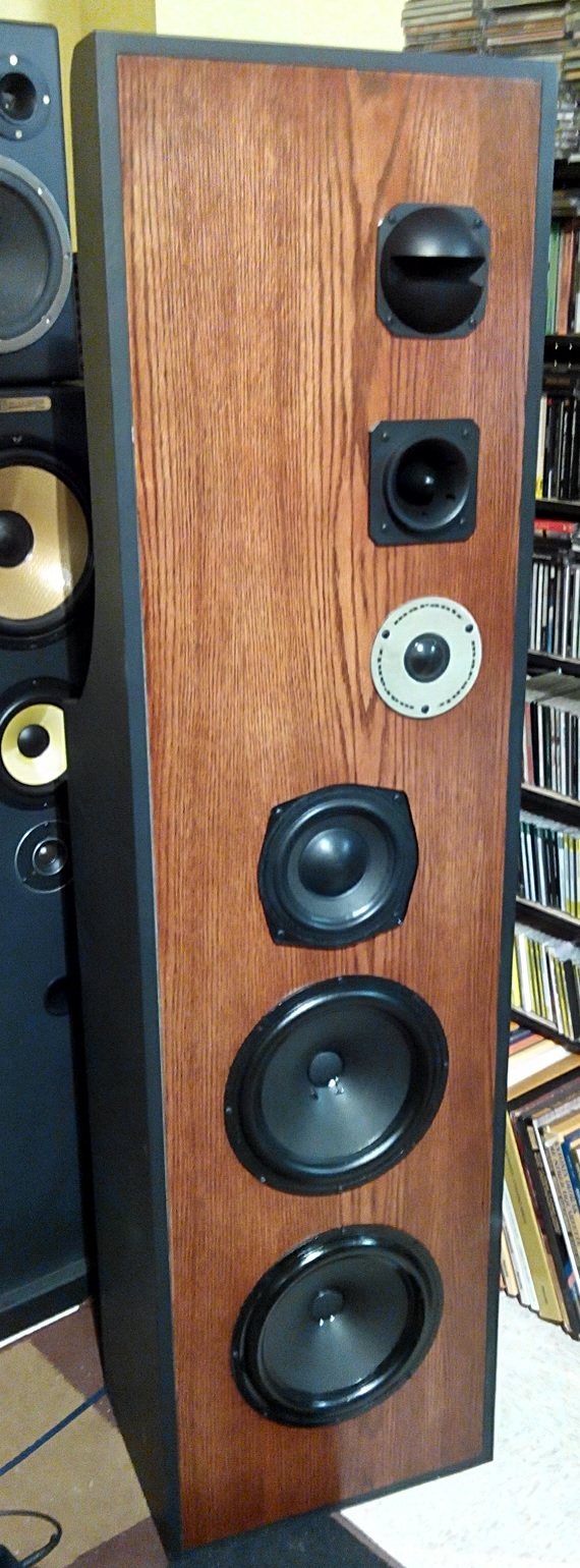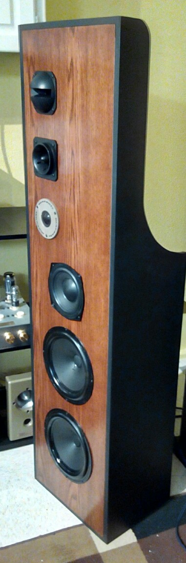 This model built with original Norway SEAS vintage alnico 10" woofer , Germany modified 6" full-range driver , MARANTZ 2" mid-range , Japan bullet horn tweeter and Japan slot horn super tweeter. Built with solid-oak front panel in thick MDF cabinet for max. support and most natural tonal quality. Open buffle design give exceptional deep and open sound stage. Dual woofer in air suspension high volume enclosure for tight and controlled bass performance.